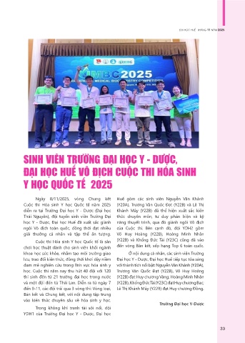 ĐẠI HỌC HUẾ VÔ ĐỊCH CUỘC THI HÓA SINH