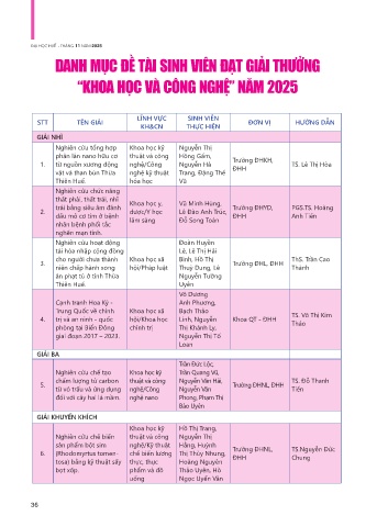 DANH MỤC ĐỀ TÀI SINH VIÊN ĐẠT GIẢI THƯỞNG