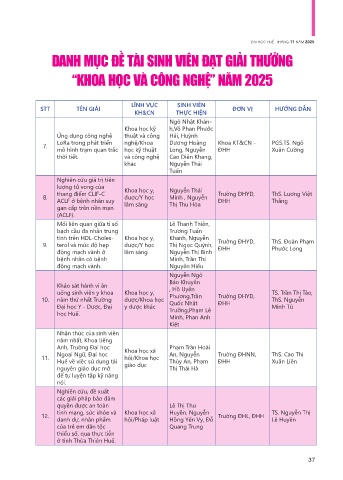 DANH MỤC ĐỀ TÀI SINH VIÊN ĐẠT GIẢI THƯỞNG
