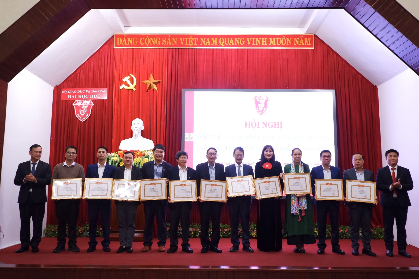 Ngày 27/12/2025, Đại học Huế tổ chức Hội nghị Tổng kết khoa học và công nghệ 2021 - 2025, định hướng phát triển 2026 - 2030 với chủ đề “Phát triển hệ sinh thái khoa học, công nghệ, đổi mới sáng tạo và chuyển đổi số trong kỷ nguyên mới”.