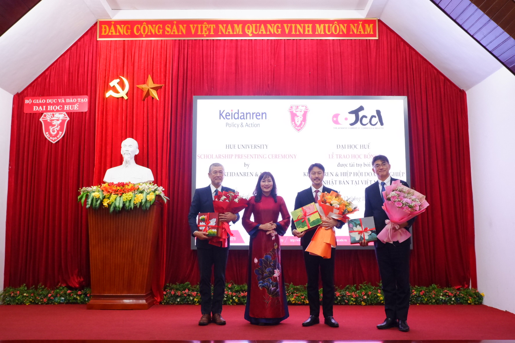 Trong hơn hai thập kỷ qua, Keidanren, JCCI và các doanh nghiệp Nhật Bản như Tập đoàn Sumitomo, Tập đoàn Ngân hàng MUFG, Tập đoàn Sojitz… đã dành nhiều suất học bổng ý nghĩa cho sinh viên Đại học Huế. Những hỗ trợ này không chỉ mang giá trị vật chất mà còn thể hiện trách nhiệm xã hội, sự quan tâm sâu sắc của các doanh nghiệp Nhật Bản đối với giáo dục Việt Nam và thế hệ trẻ.