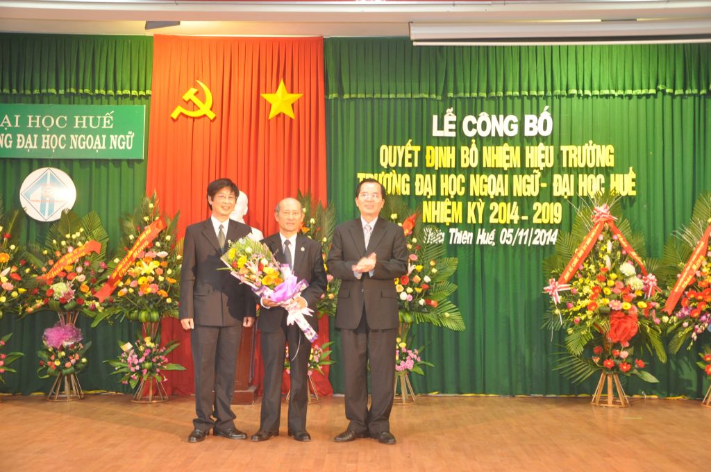 Tại buổi lễ, PGS.TS. Nguyễn Văn Toàn, Bí thư Đảng uỷ, Giám đốc Đại học Huế trao Quyết định số 1972/QĐ-ĐHH ngày 31/10/2014 của Giám đốc Đại học Huế bổ nhiệm TS. Bảo Khâm, Phó hiệu trưởng giữ chức vụ Hiệu trưởng Trường Đại học Ngoại ngữ nhiệm kỳ 2014 – 2019.