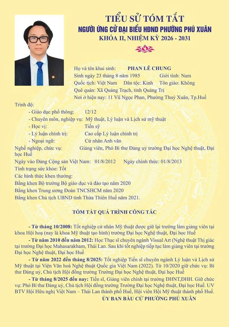 Ứng cử đại biểu Hội đồng nhân dân Phường Phú Xuân khóa II, nhiệm kỳ 2026-2031: