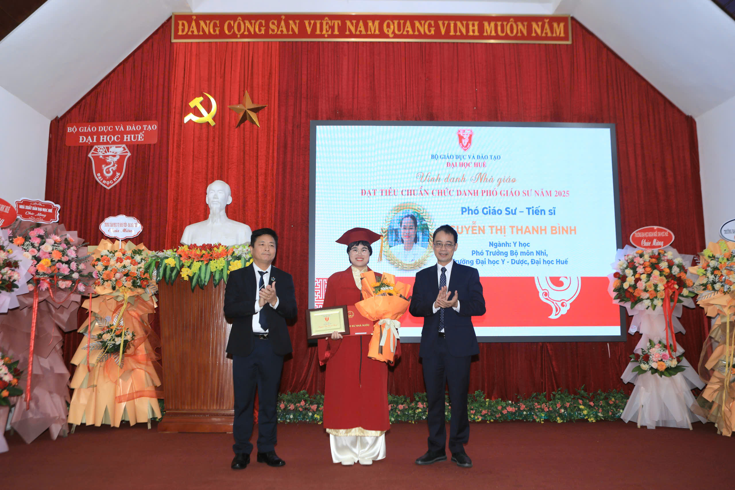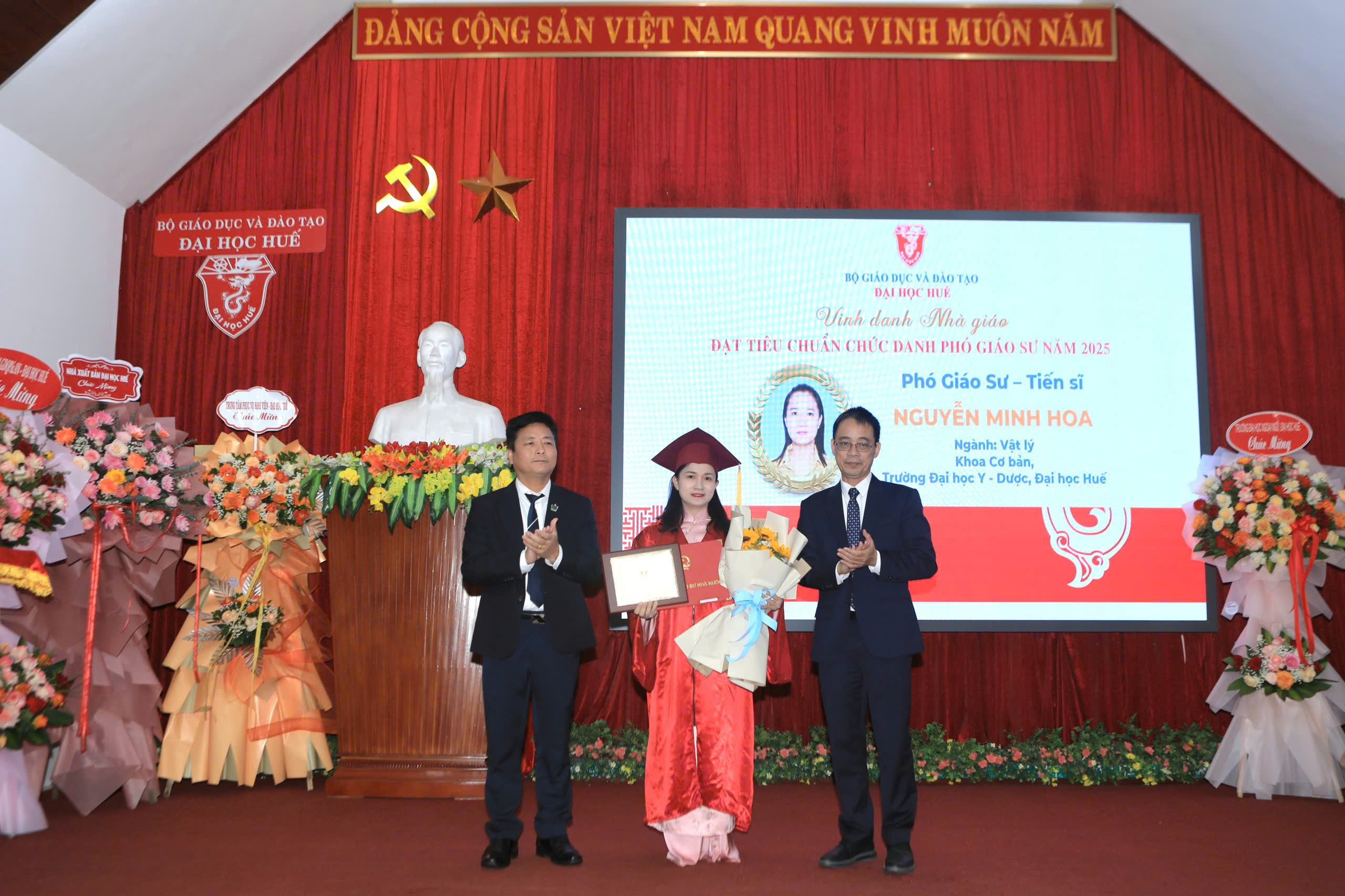 Năm 2025, Đại học Huế có 02 giảng viên được công nhận đạt chuẩn chức danh Giáo sư và 35 giảng viên đạt chuẩn chức danh Phó Giáo sư. Bên cạnh đó, 03 Phó Giáo sư thuộc Bệnh viện Trung ương Huế thuộc Hội đồng Giáo sư cơ sở Đại học Huế cũng được công nhận và vinh danh tại buổi lễ.