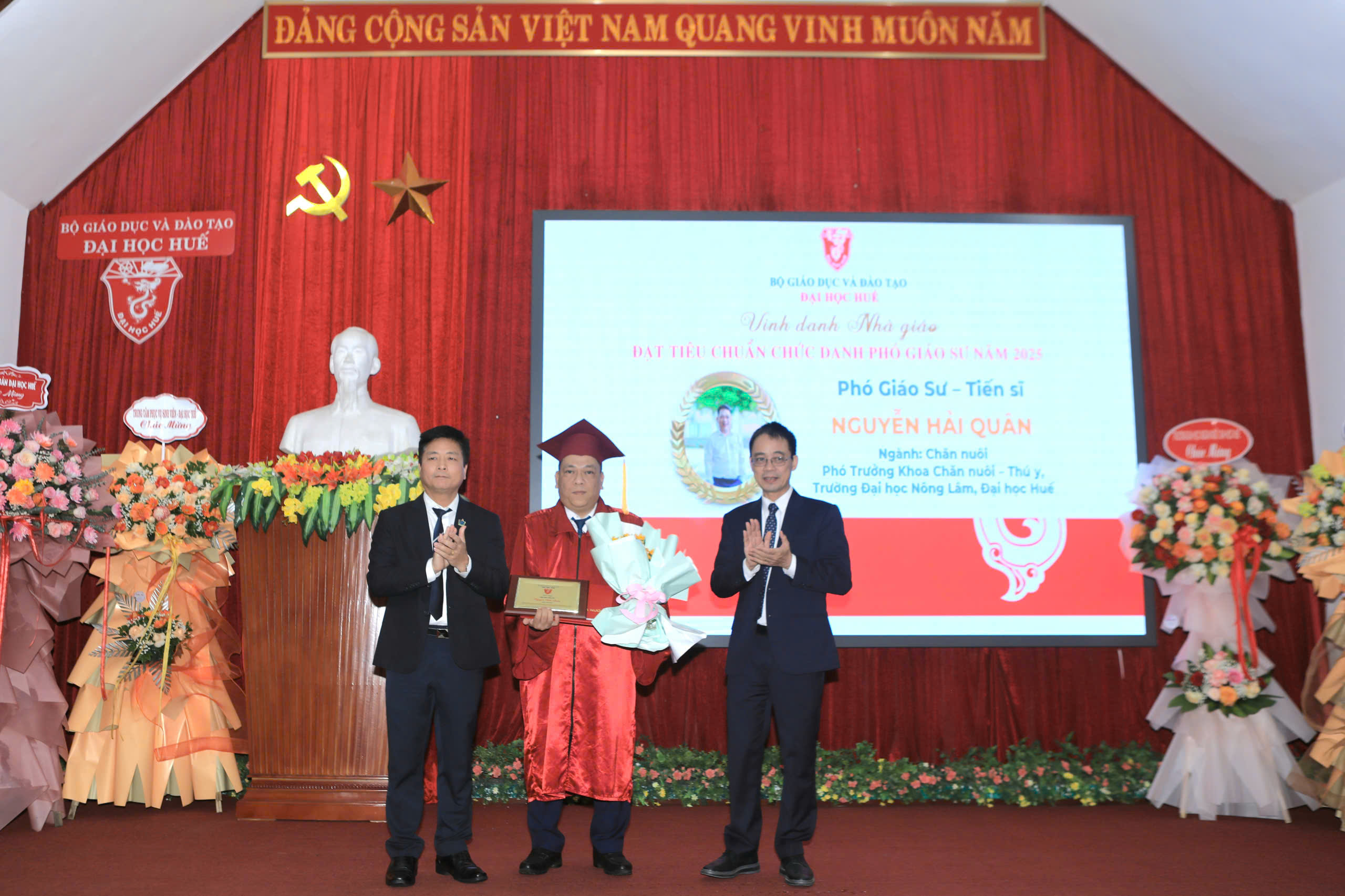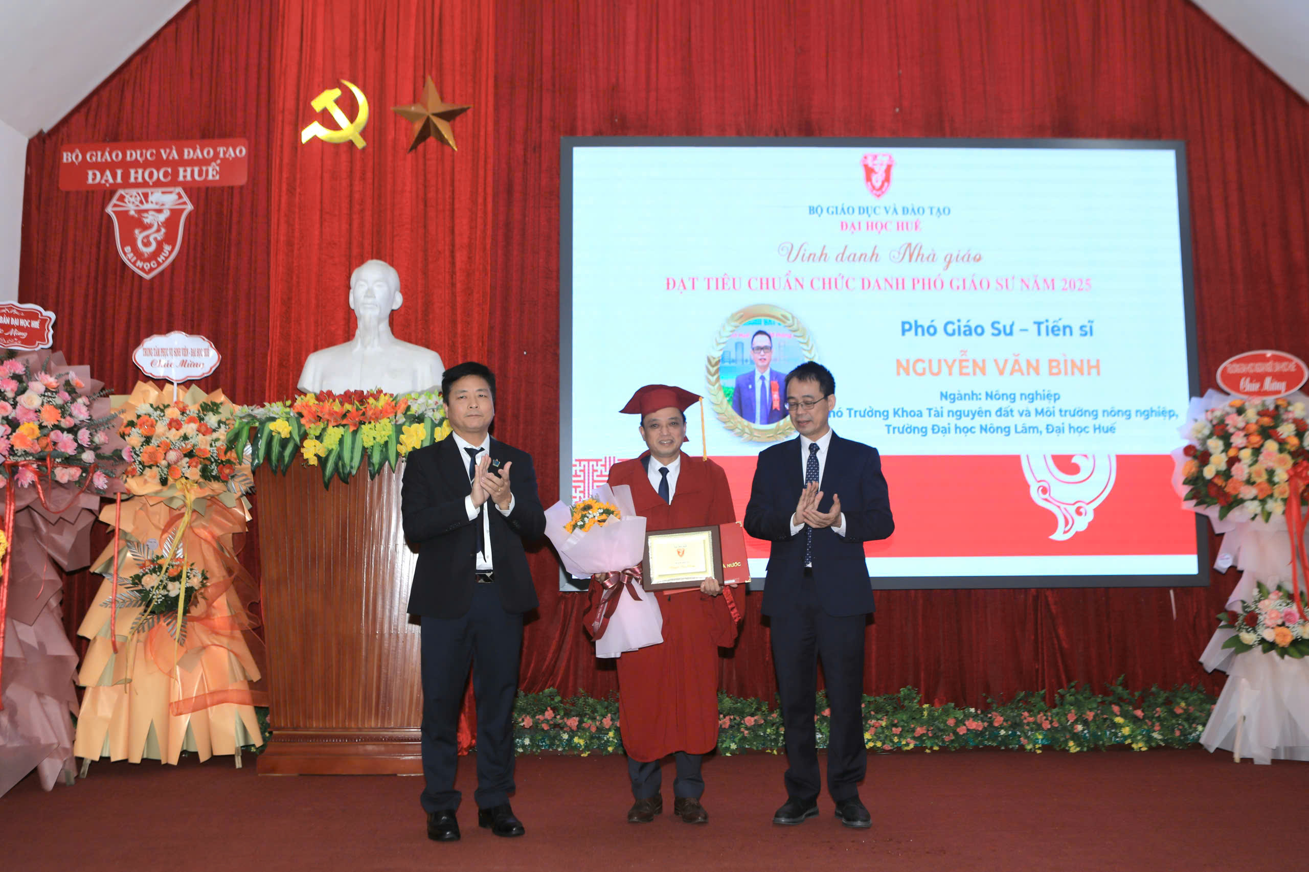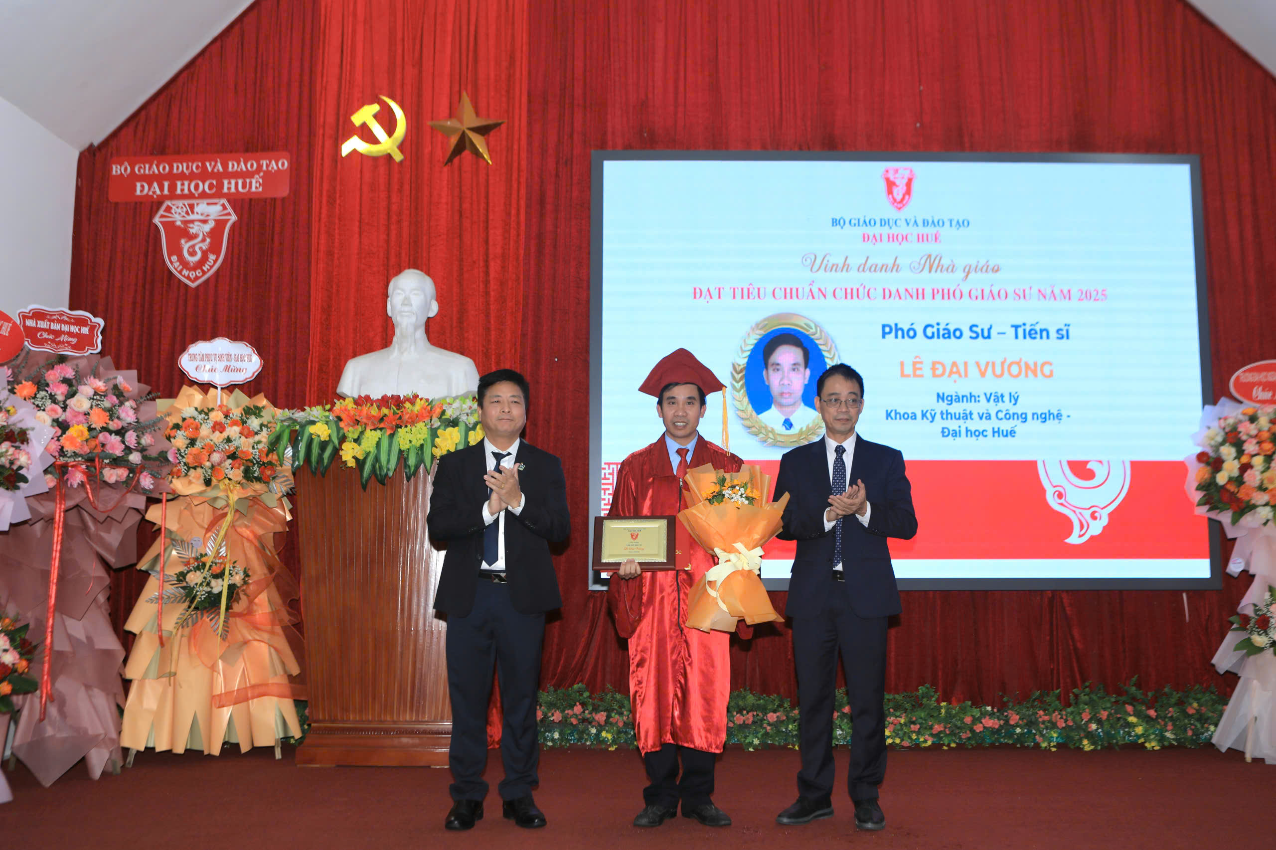 Chiều ngày 01 tháng 12 năm 2025, tại Hội trường số 03 lê Lợi, Đại học Huế đã long trọng tổ chức Lễ công bố quyết định và trao Giấy chứng nhận đạt tiêu chuẩn chức danh Giáo sư (GS), Phó Giáo sư (PGS) năm 2025 cho các nhà giáo được Hội đồng Giáo sư Nhà nước công nhận. Đây là sự kiện có ý nghĩa đặc biệt, nhằm tôn vinh tri thức, ghi nhận những cống hiến to lớn của đội ngũ trí thức, giảng viên trong sự nghiệp đào tạo, nghiên cứu khoa học và đóng góp cho sự phát triển của Đại học Huế cũng như nền giáo dục đại học Việt Nam.