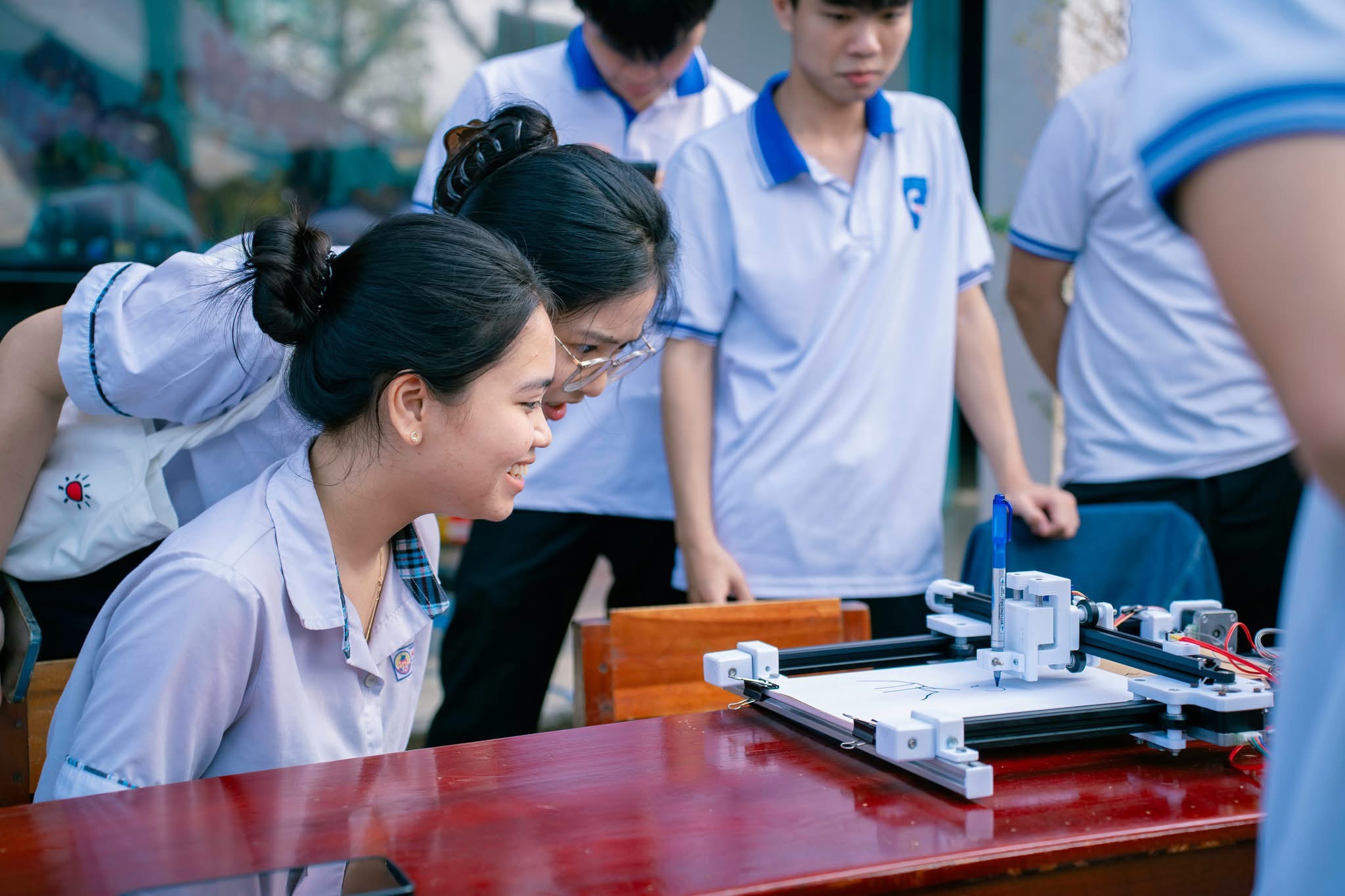 Bên cạnh hoạt động tư vấn tuyển sinh, hướng nghiệp, một số đơn vị còn tổ chức các hoạt động trải nghiệm giúp học sinh tiếp cận trực quan với các lĩnh vực đào tạo. Nổi bật là khu vực trải nghiệm robot công nghệ do Trường Đại học Khoa học, Đại học Huế giới thiệu với các mô hình robot thông minh, xe robot điều khiển cùng nhiều thiết bị công nghệ, thu hút sự quan tâm của đông đảo học sinh. Ngoài ra, hoạt động vẽ chân dung bằng robot ứng dụng trí tuệ nhân tạo (AI) cũng mang đến trải nghiệm thú vị cho học sinh khi hệ thống máy vẽ có thể hoàn thành những bức chân dung độc đáo chỉ trong thời gian ngắn.