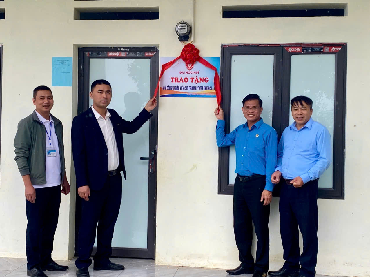 Ngày 30/9/2025, đoàn công tác của Đại học Huế đã trao tặng nhà công vụ và tặng quà giáo viên, học sinh tại Trường Phổ thông Dân tộc bán trú Tiểu học và THCS A Lù xã Y Tý, Lào Cai. Tham dự buổi trao tặng có PGS. TS. Nguyễn Duân - Ủy viên Ban Thường vụ Công đoàn Giáo dục Việt Nam, Chủ tịch Công đoàn Đại học Huế thay mặt lãnh đạo Đại học Huế đã trao tặng nhà công công vụ và trao quà tặng giáo viên, học sinh nhà trường. Trong đó, công trình nhà công vụ trị giá 400 triệu đồng; quà tặng giáo viên và học sinh nhà trường trị giá 50 triệu đồng. Đây là món quà ý nghĩa thể hiện tấm lòng của nhà giáo, viên chức và người lao động của Đại học Huế với mong muốn chia sẻ những khó khăn đến thầy cô, học sinh nơi vùng cao gian khó, đồng thời cũng là nguồn động viên dành cho giáo viên, học sinh vùng cao để vượt qua khó khăn trong cuộc sống. Một số hình ảnh tại buổi trao nhà công vụ và quà tặng giáo viên, học sinh của nhà trường: