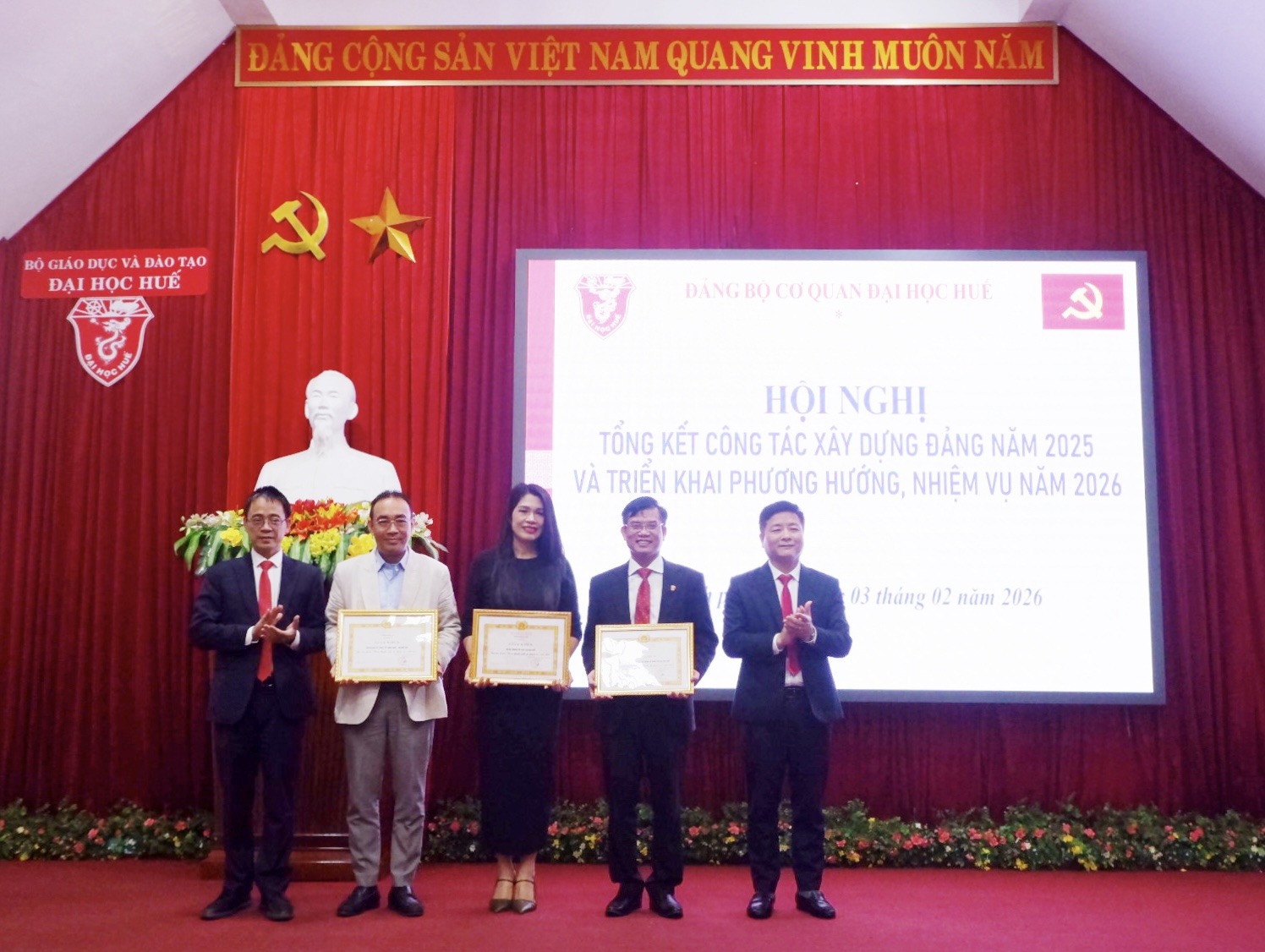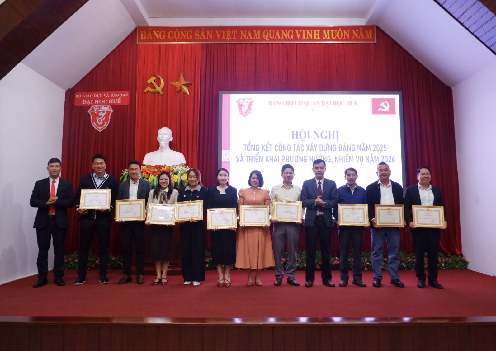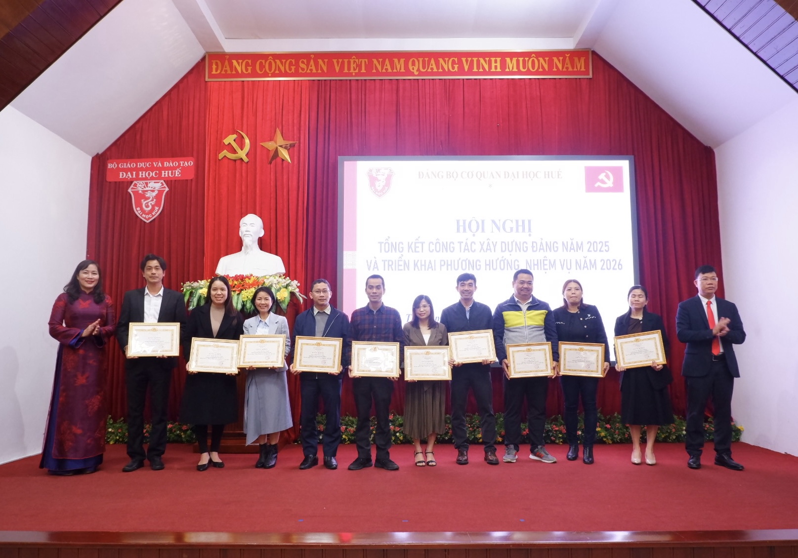 Dịp này, Ban Chấp hành Đảng bộ Cơ quan Đại học Huế đã trao tặng Giấy khen cho 03 tập thể và 36 cá nhân có thành tích xuất sắc trong năm 2025.