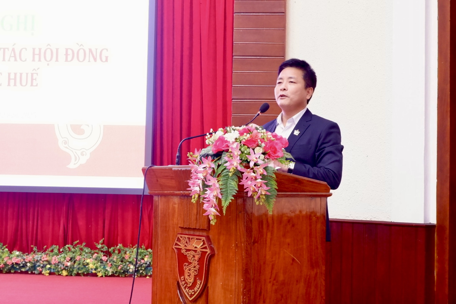 Phát biểu tại Hội nghị, TS. Bùi Văn Lợi, Phó Bí thư Đảng uỷ, Phó Giám đốc Phụ trách Đại học Huế đã gửi lời tri ân tới các quý thầy nguyên thành viên Hội đồng Đại học Huế, Hội đồng Đại học Huế và Hội đồng trường các trường thành viên. Trong nhiệm kỳ qua, Hội đồng Đại học Huế đã thực hiện tốt nhiệm vụ trong công tác quản trị đại học, đặc biệt trong bối cảnh mới, qua đó đóng góp tích cực vào sự phát triển chung của Đại học Huế.