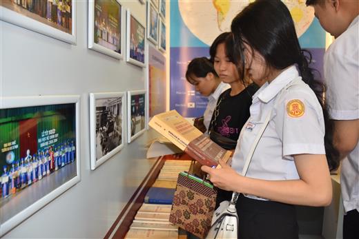 ![]() Học sinh thăm quan phòng truyền thống.