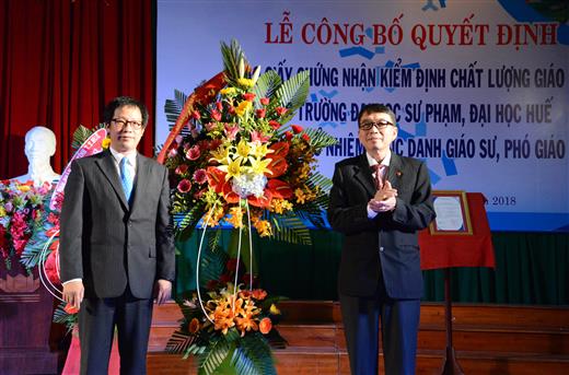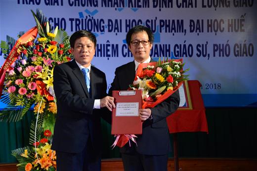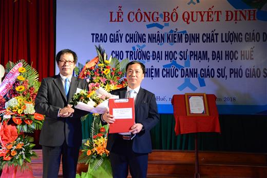 Sáng ngày 16/4, tại Giảng đường I, Trường Đại học Sư phạm, Đại học Huế long trọng tổ chức Lễ Công bố Quyết định trao Giấy chứng nhận kiểm định chất lượng giáo dục và Bổ nhiệm chức danh giáo sư, phó giáo sư năm 2017.