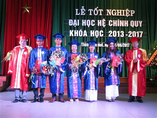 Ngày 27/6, Trường ĐH Sư phạm, Đại học Huế tổ chức Lễ tốt nghiệp đại học hệ chính quy khoá học 2013-2017. Trong 1.374 sinh viên được xét công nhận tốt nghiệp đợt này, có 1.269 sinh viên khóa 2013-2017, 33 sinh viên các khoá trước và 72 sinh viên chính quy ngành Giáo dục Mầm non đào tạo liên kết với Trường Đại học An Giang.